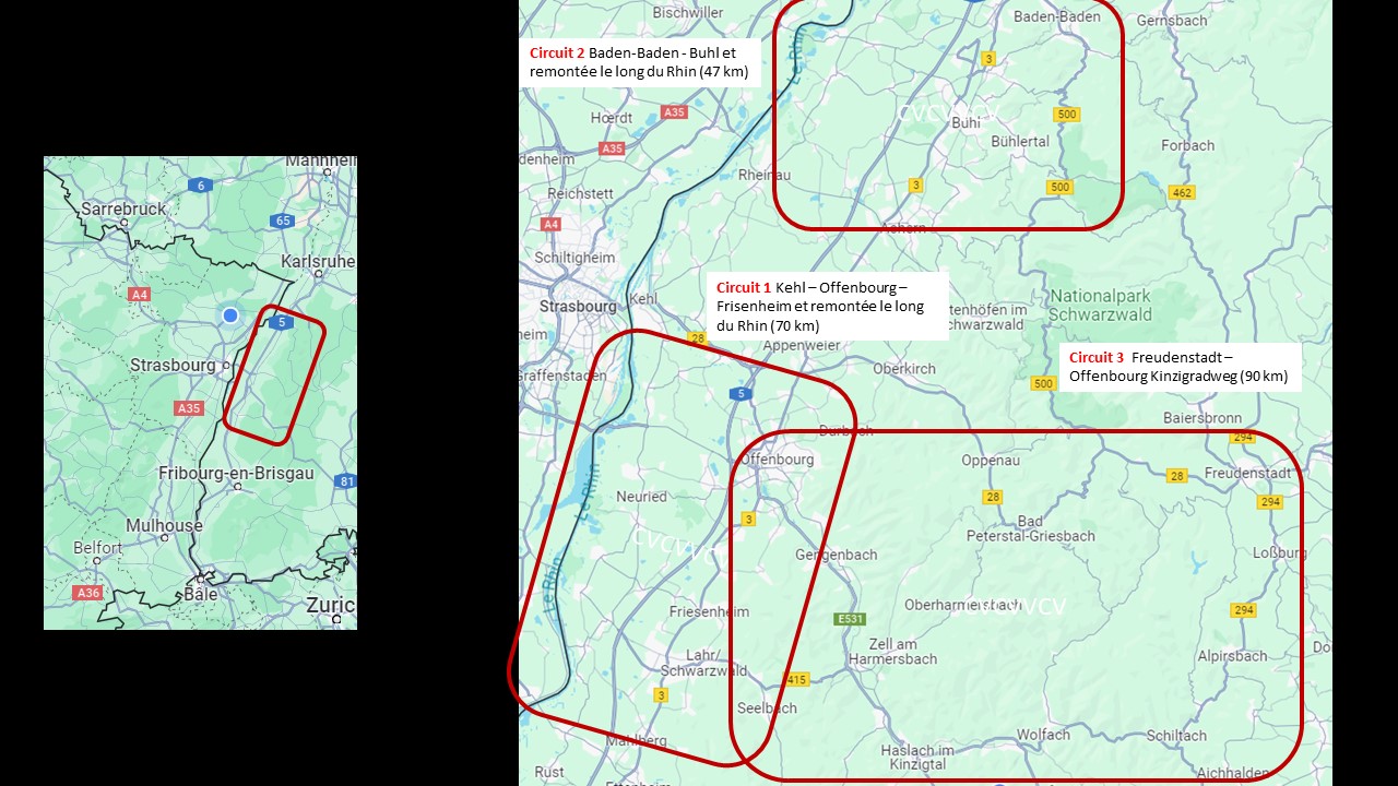 Circuit 2 : Boucle en partant de Baden-Baden , en passant par Buhl puis remontée le long du Rhin