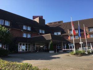 à 8 km du centre mais finalement il est assez facile de se rendre à Hambourg avec le train; gros avantage de l’hôtel on peut laisser sa voiture sur le parking gardé moyennant 3€ par jour. Très bon rapport Qualité Prix mais toujours plein.