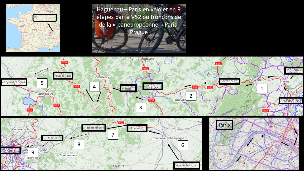 Vèlo 09/2024C’est un trajet qui va de Haguenau ( ou Strasbourg) à Paris en suivant le cours de différents canaux ; Il fait partie de la véloroute ” paneuropéenne” qui va de Prague à Paris