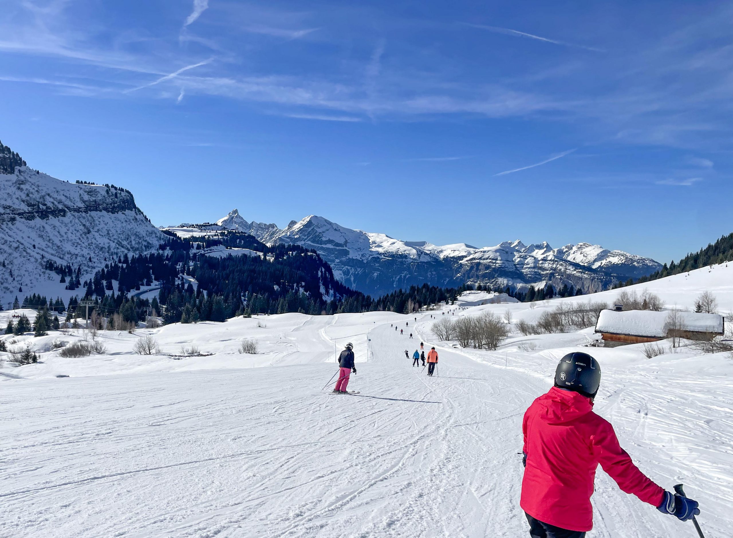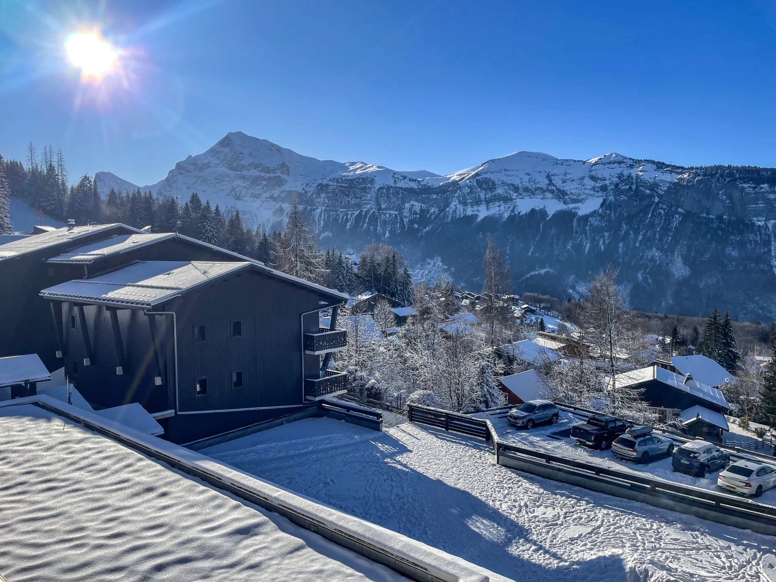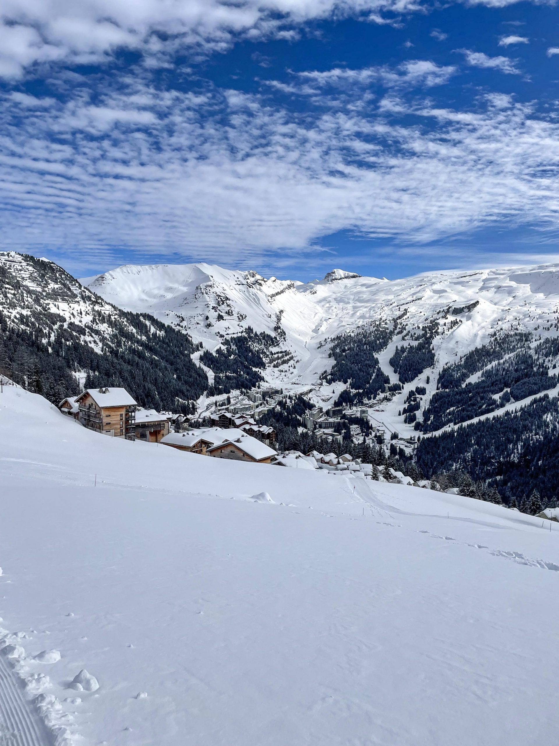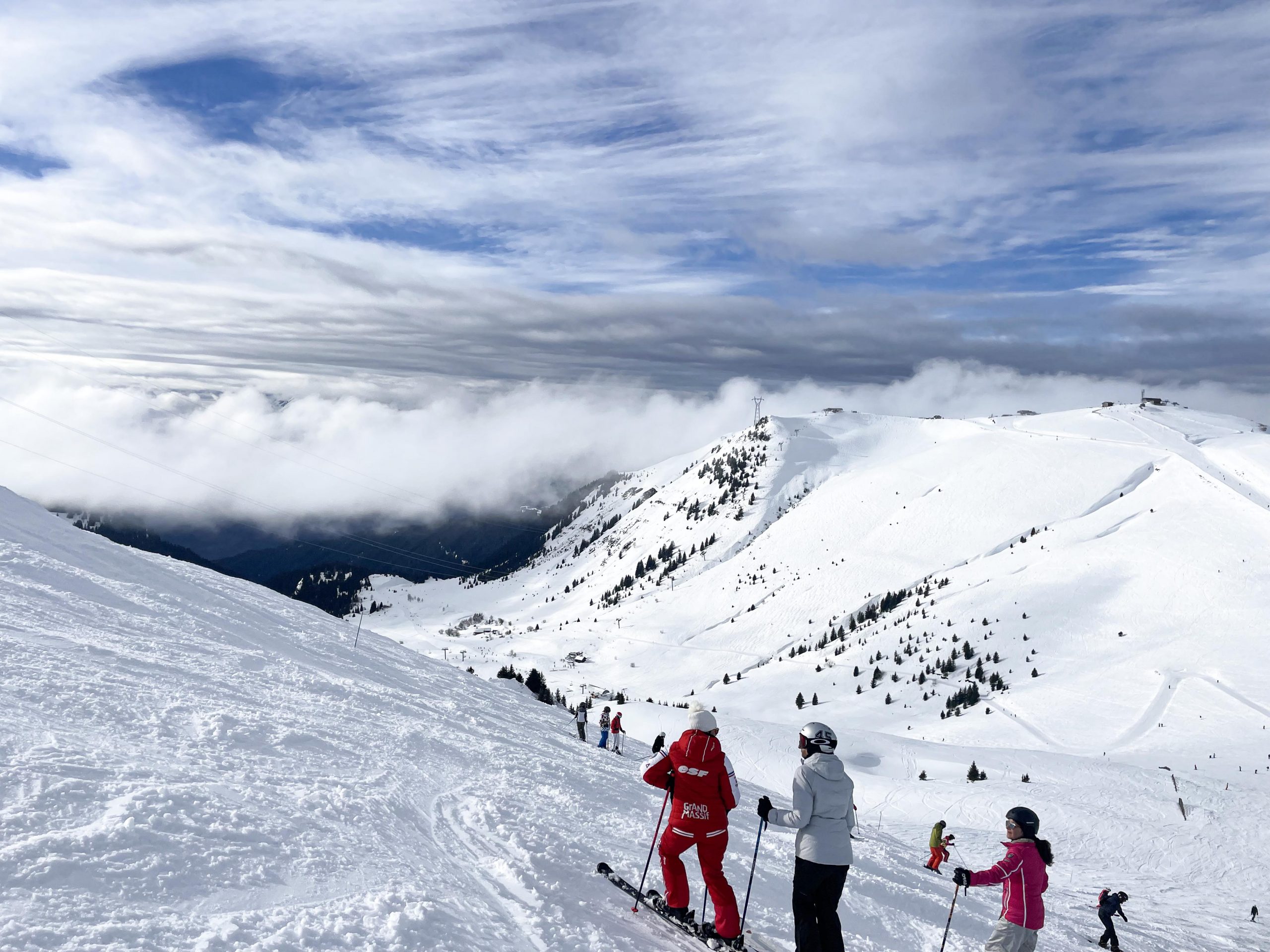 On trouve la station des Carroz d’Araches à 1200m en allant vers Chamonix et c’est une des premières stations accessibles des Alpes. Elle fait partie du “Grand Massif” avec les stations suivantes: Flaine, Les Carroz, Morillon, Samoëns et Sixt, très grand domaine donc mais en ces disettes de neige vite elle est vite dépourvue de neige en bas et souvent la neige est glacée en haut.