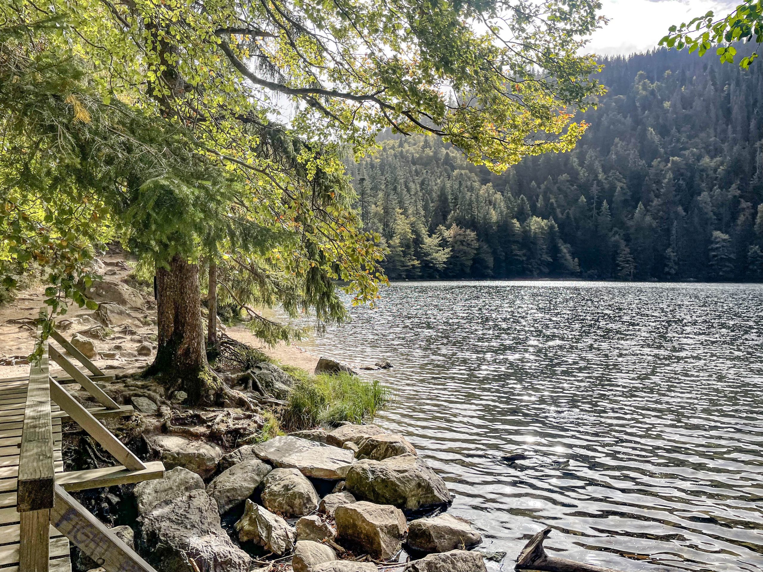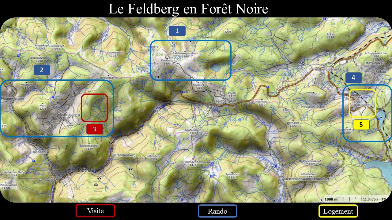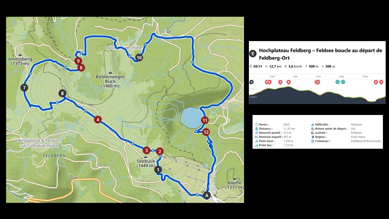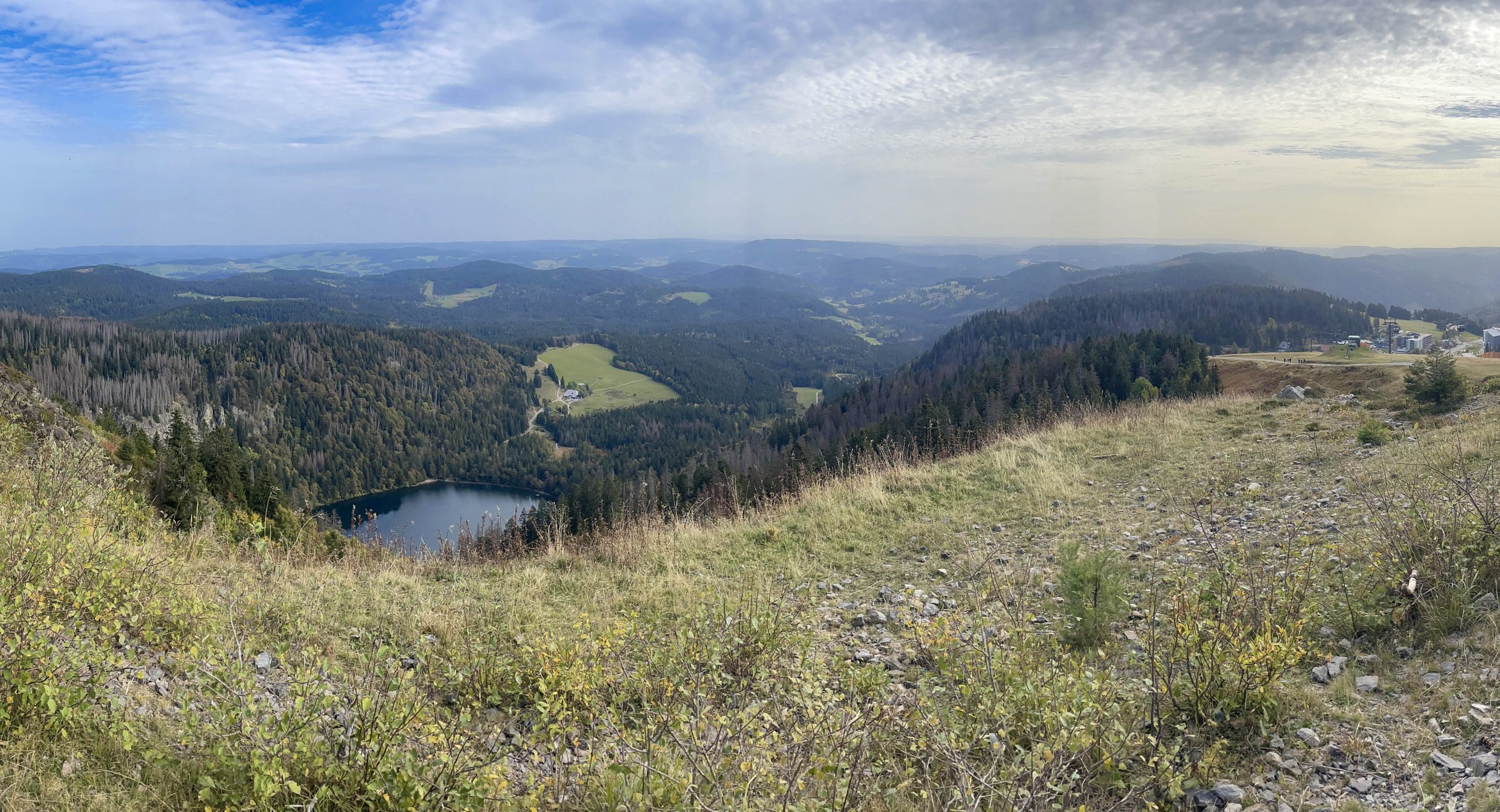 Magnifique randonnée qui part de la station de ski du Feldberg puis monte au sommet à 1493 m avant de descendre au petit lac de Feldsee.