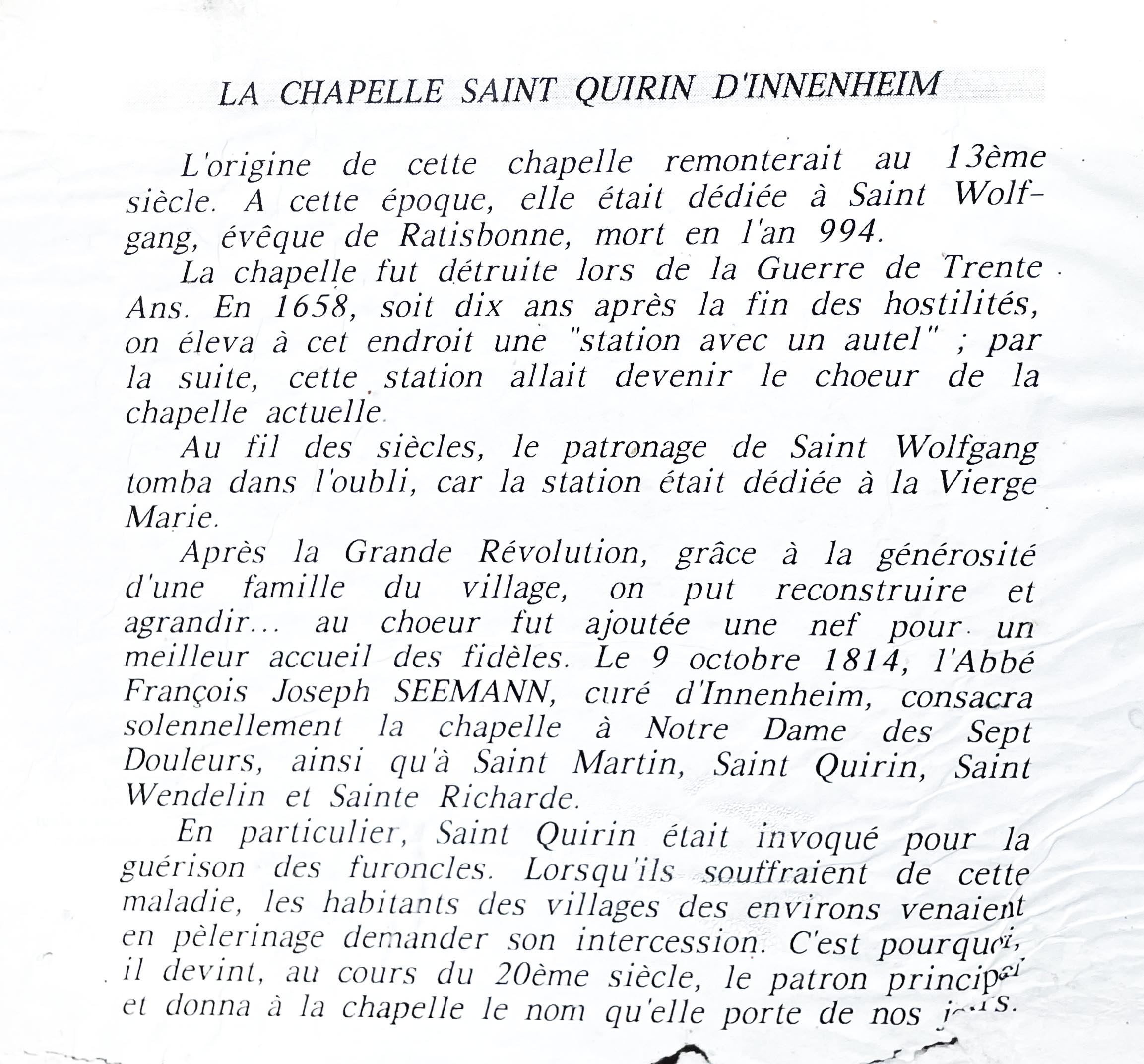 • La chapelle de Notre Dame d’Altbronn et sa petite source