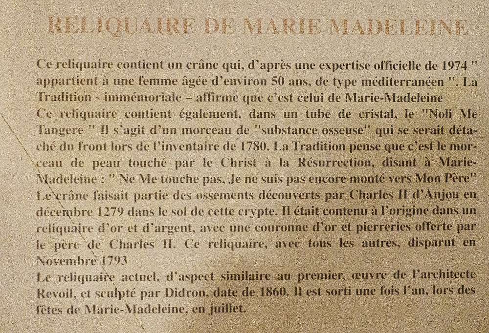 Visite de la cathédrale de st Maximin sur le trajet décevante à cause des travaux mais intéressante car il y a (peut-être) des reliques de Marie-Madeleine. Mais qui est Marie Madeleine ?