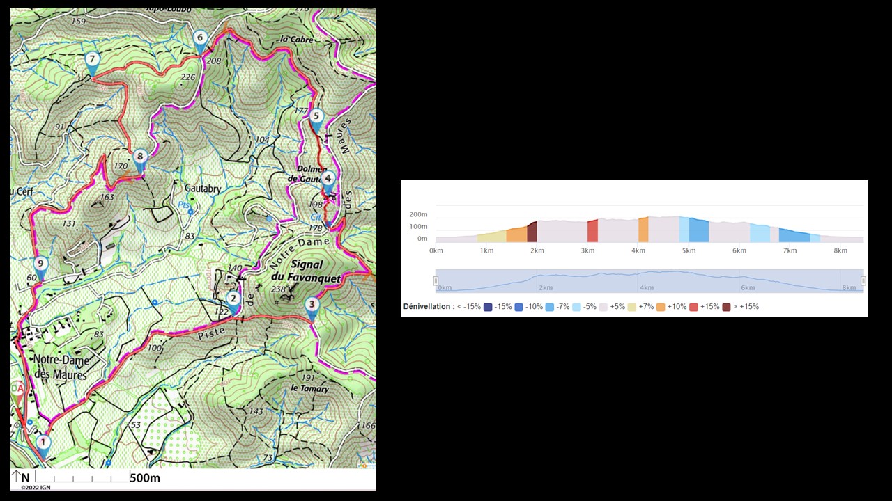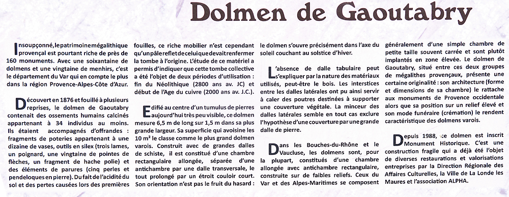 Balade à partir de  LaLonde-Les-Maures vers le Dolmen de Gaoutraby sans difficulté majeure.