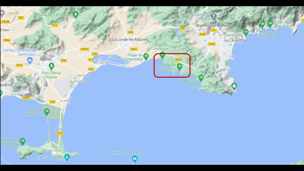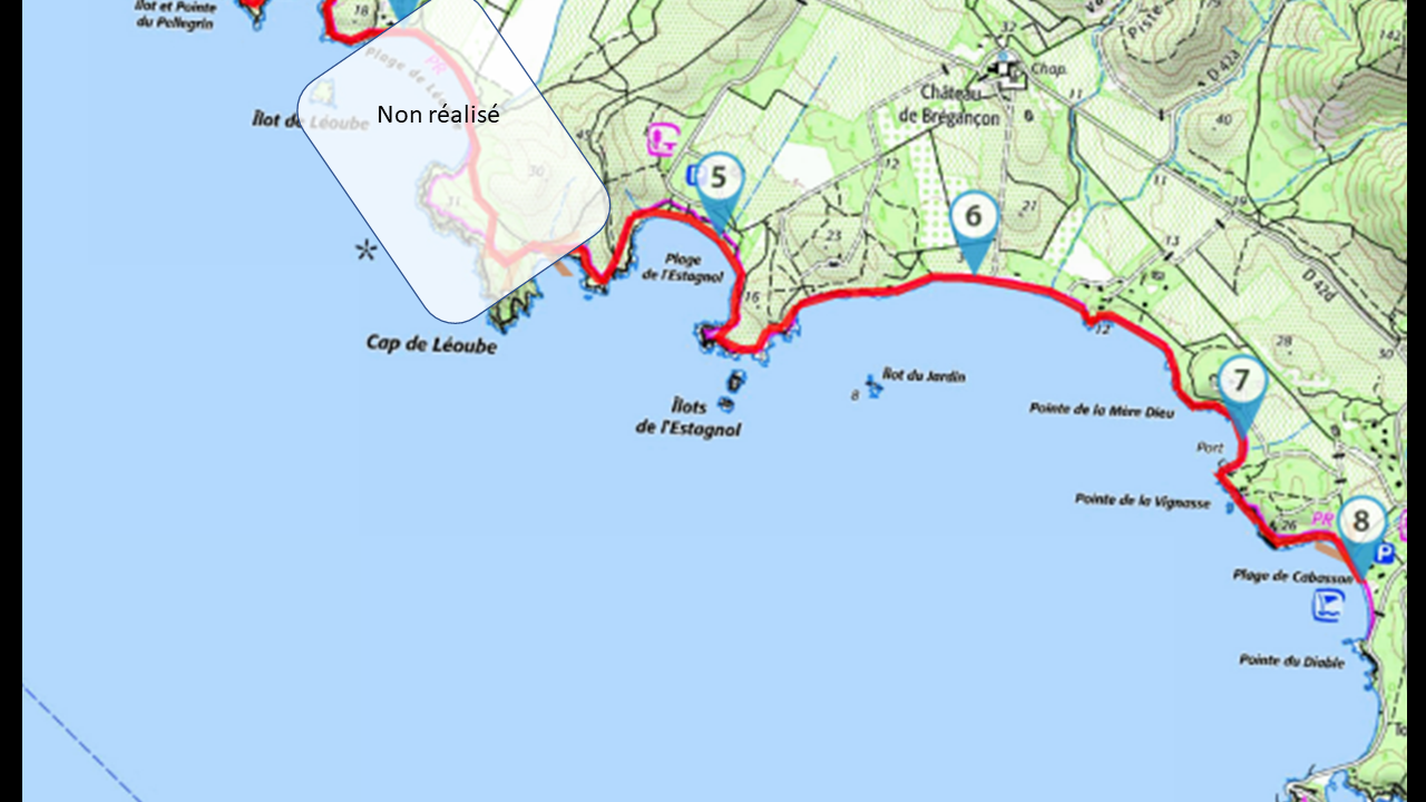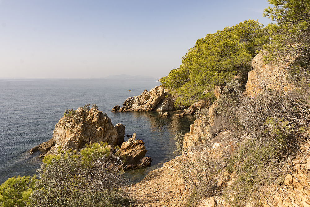 Très belle randonnée près du Fort de Brégançon et qui longe la côte, de la plage de Cabasson jusqu’à la superbe plage de l’Estagnol où un bain dans les eaux turquoises s’impose. Aller-retour car le retour par la route est sans intérêt