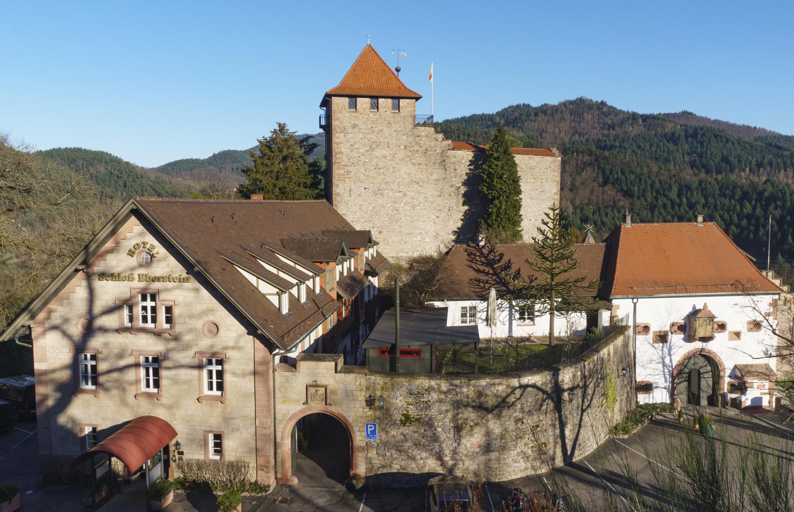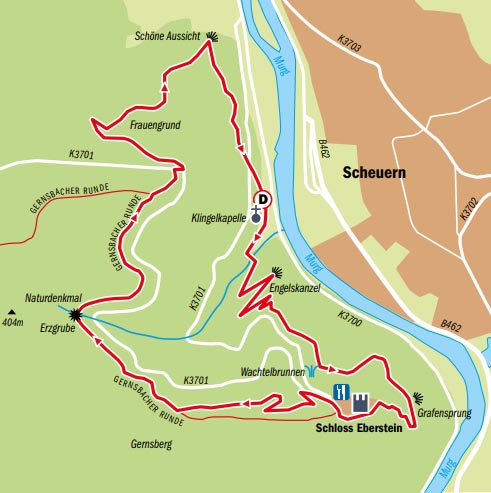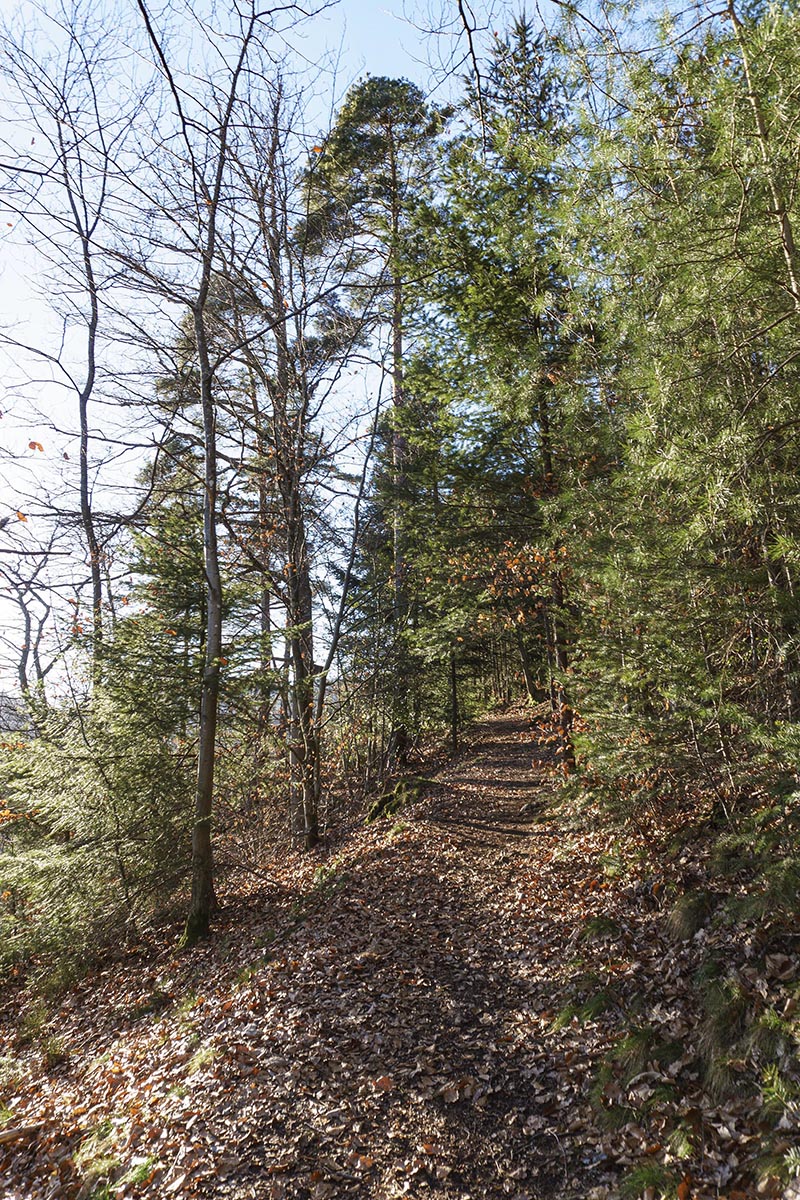 En partant de la Klingekapelle, ça monte assez vite . La vue au Grafensprung vaut le détour mais on a rebroussé chemin pour rejoindre le chateau Eberstein. Après la grotte, petit problème car les chemins sont coupés pour assénir la forêt et donc également interdits .. mais comme il n’y a pas d’autres choix possibles…