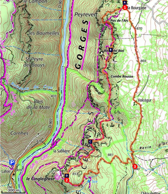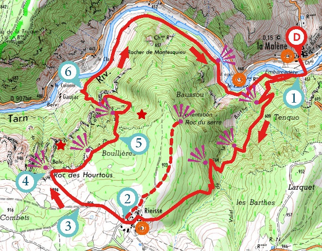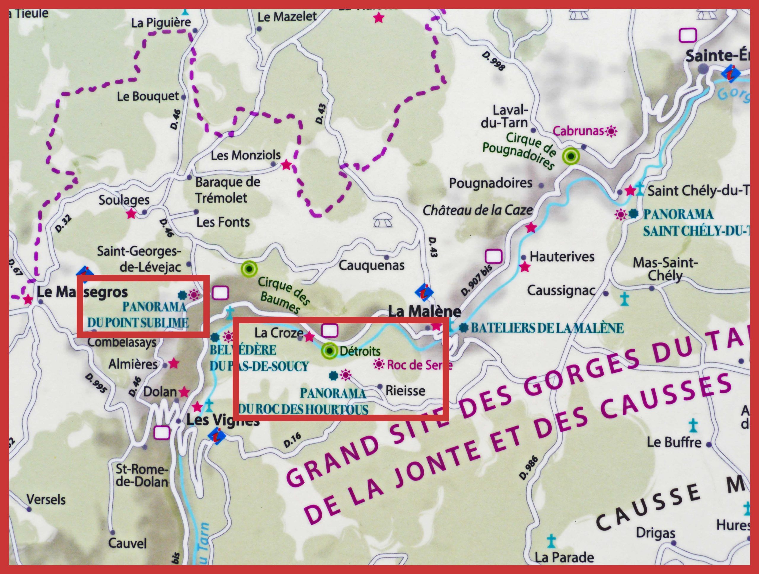 - La deuxième (Balade des Hourtous) part du bas (***) est completé par un détour en voiture au Point Sublime