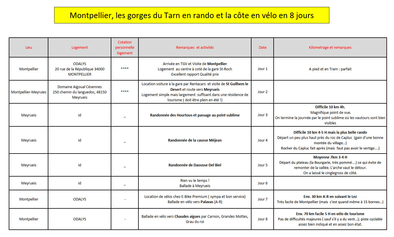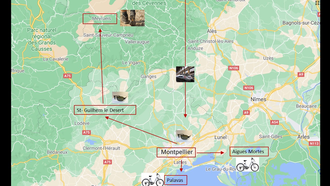 Montpellier St Guillhelm du desert avec les Gorges du Tarn et 2 balades à vélo sur la côte en 7 jours